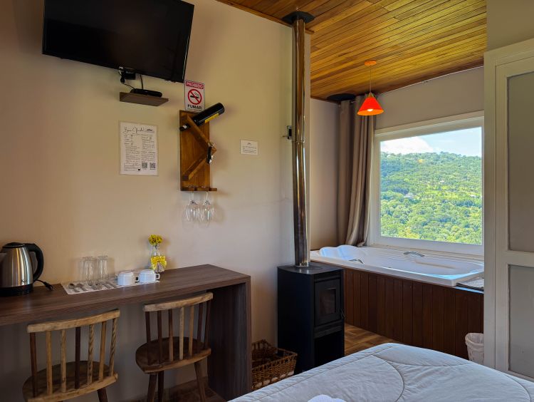 Com ambiente acolhedor e confortável, é perfeito para dias de descanso e momentos especiais a dois. A lareira e a hidromassagem criam o clima ideal para relaxar após um dia explorando a região.